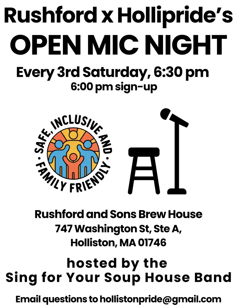 Come join HolliPride’s Open Mic Night @ Rushford and Sons,