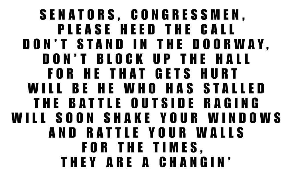 Fight the Power – Isley Brothers For What It’s Worth – Buffalo Springfield Impeach the President – The Honey DriippersBased on RESPECT – Aretha FranklinGet up, Stand up – Bob Marley and the WailersBased on Nelson Mandela – The SpecialsImagine – John LennonBlowin’ in the Wind – Stevie WonderA Change is Gonna Come – Aretha FranklinWe Shall Overcome – Guy CarawanAmerica the Beautiful – The RascalsSpirits of the Revolution – Larry EstridgeThe Times they are a Changin’ – Bob DylanYou Need to Calm Down – Taylor SwiftThis Land was Made for you and Me – Steve Forbert, Jack Hardy , Jill Burkee and John MannTalkin’ ‘bout a Revolution- Tracy Chapman(We don’t need this) Fascist Groove Thing – Heaven 17